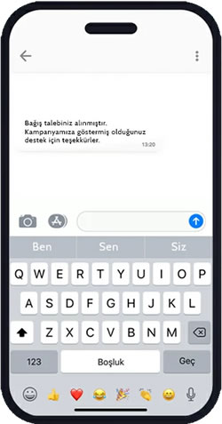 Tüm GSM operatörleri (Turkcell, Türk Telekom, Vodafone) üzerinden aşağıdaki şekillerde SMS yoluyla bağış yapabilirsiniz.